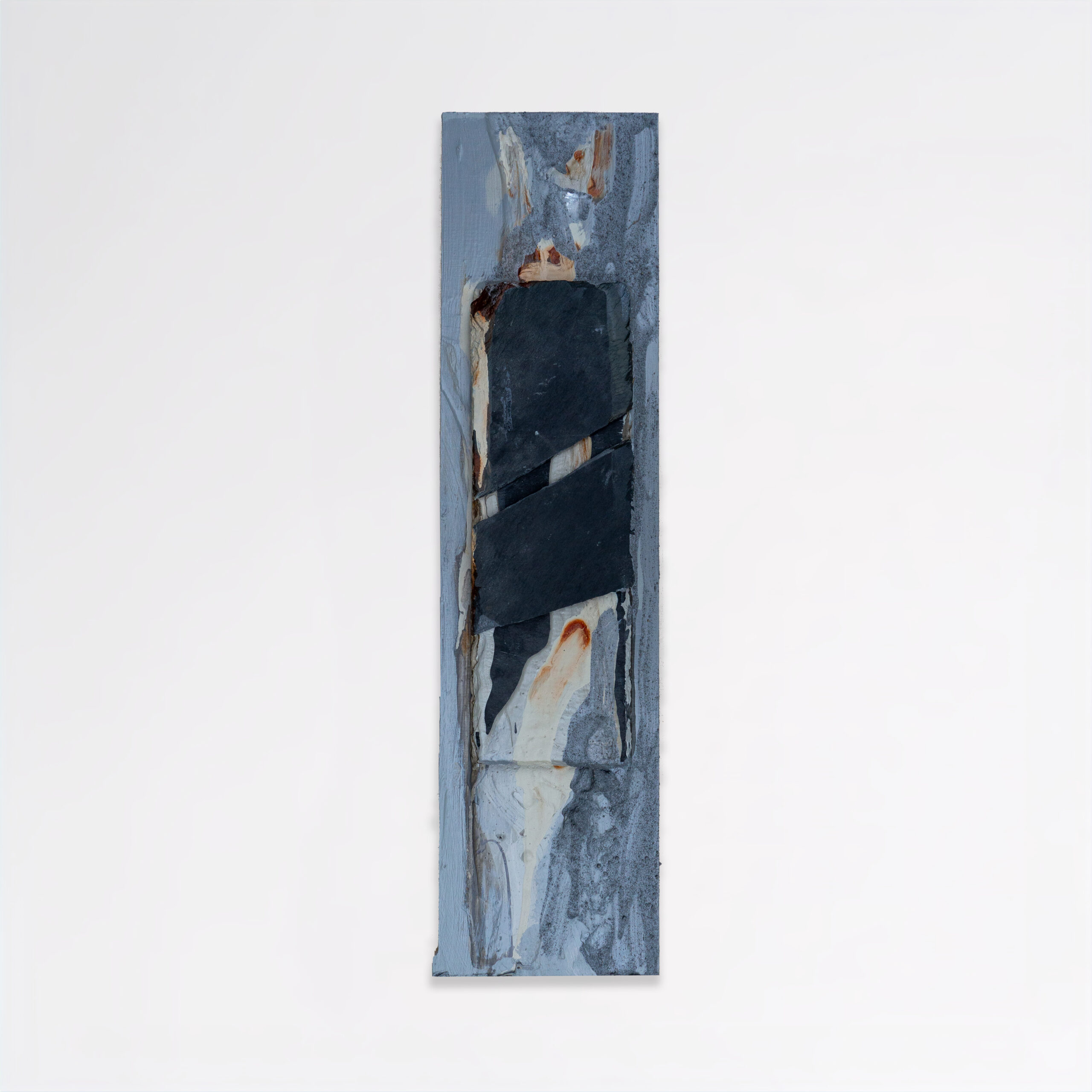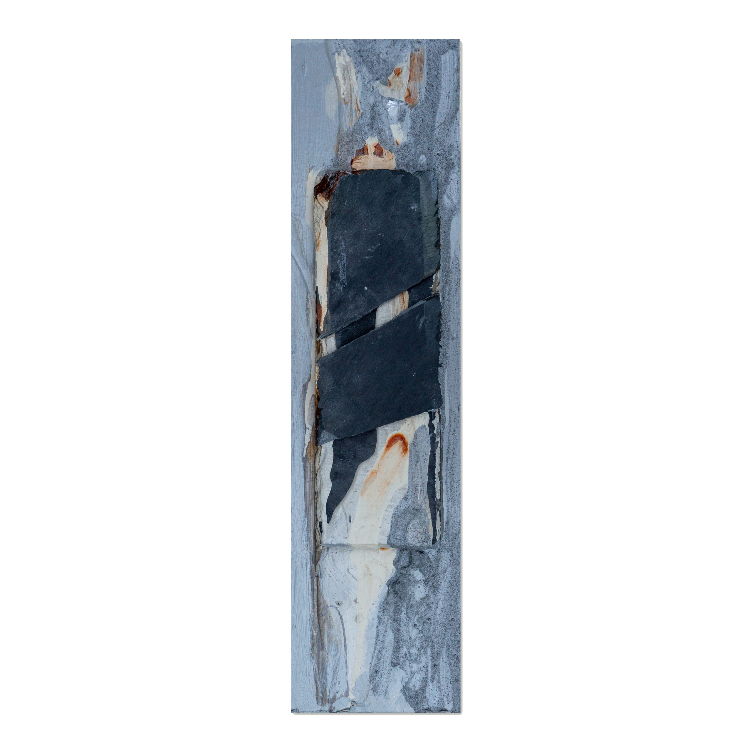 Impression of time 2 Sculptural painting with wood, slate, sand, henna powder and paint. 14×55 cm, 2023 Close-up Impression of time 1 + 2